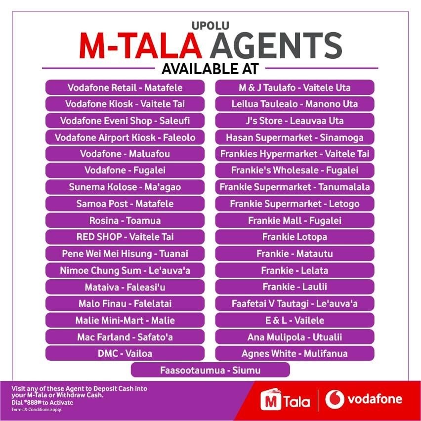 Add your beneficiaries in Samoa using their full legal name exactly as shown on their official ID. They must have an active Vodafone Samoa mobile number and be registered for M-Tala.